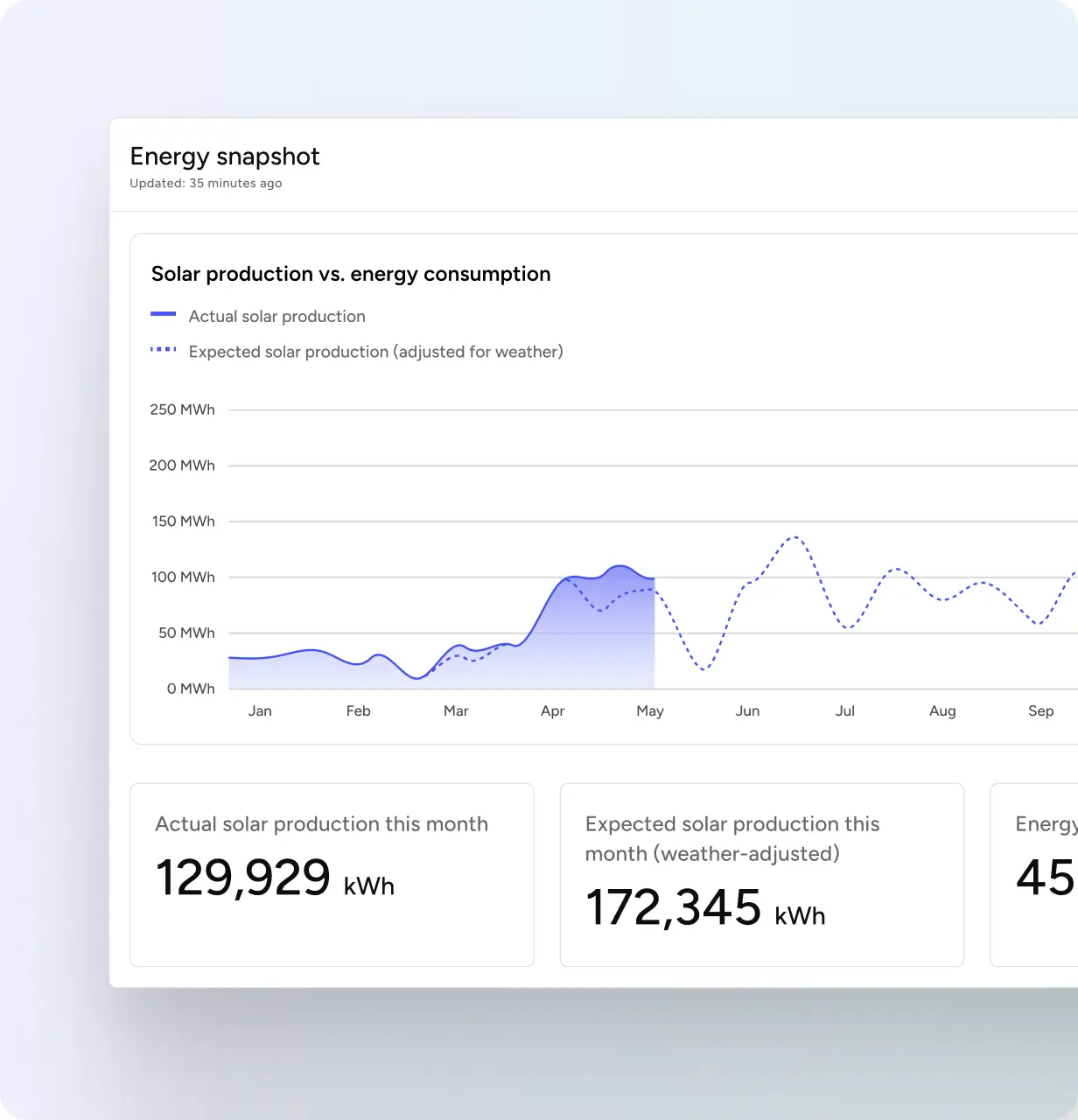Solar production varies daily and monthly based on system performance, weather patterns, and the seasons. Shine allows you to rigorously track your systems’ solar production, so you can confidently bill tenants for the precise amount of solar generated and back it up with auditable data.
